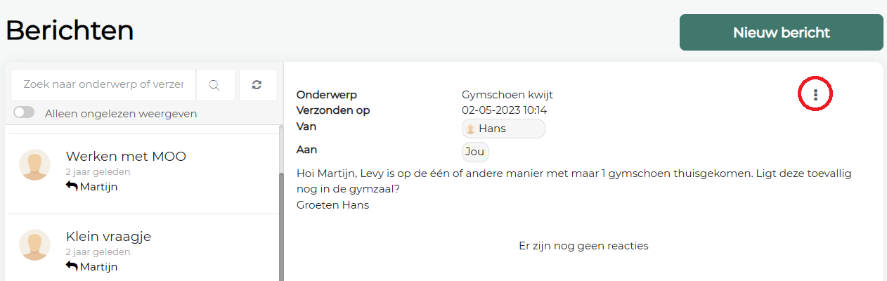 Bij het aanmaken van een nieuw bericht in de berichtenbox kun je de ontvanger(s) van het bericht kiezen. Soms wil je op een later moment een extra ontvanger toevoegen. Bijvoorbeeld wanneer een ouder een bericht heeft gestuurd naar één leerkracht, maar het bericht ook relevant is voor een duo-collega.